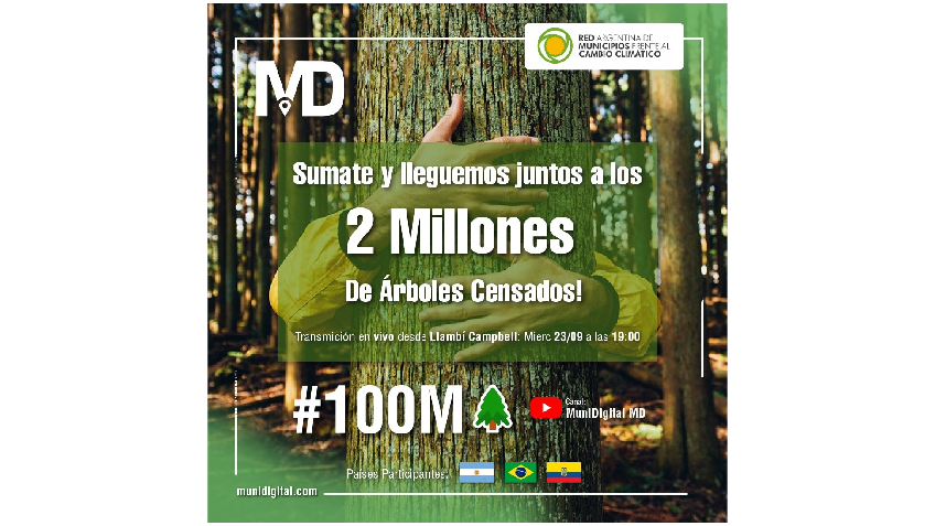 A través de la Aplicación Muni Arbol y juntos a la "Red Argentina de Municipios en Accion frente al Cambio Climático" representamos no solo a nuestro pueblo sino también a la Provincia y a nuestra Argentina en esta maravillosa acción conjunta con países de Latinoamerica, la de llegar a censar 2 millones de árboles.